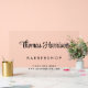 Individuell klares Acrylzeichen für Ihr Unternehmen mit Ihrem Firmennamen oder Markennamen in einem stilvollen Signaturskript und zusätzlichem Text, falls gewünscht, in einfacher moderner Schrift.