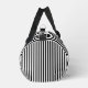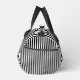 A sleek weekend duffle bag featuring bold black and white stripes that add a touch of classic charm to your travel style. Crafted for durability and comfort, it offers ample space for essentials while staying lightweight and chic. Perfect for short trips or gym days, blending elegance with practicality.