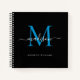Stilvolle Black Ocean Sky Blue Monogram Initial Modern Script Calligraphy Name Notebook