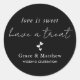 The "Stylish Black & White Love is Sweet Wedding Favor Classic Round Sticker" combines timeless elegance with modern flair. Its sleek black and white design and heartfelt message convey sincere appreciation to guests. Perfect for sealing favor bags or adorning favor boxes, this sticker adds a touch of sophistication to your wedding favors. Its stylish appeal and universal sentiment make each favor a memorable token of your love and gratitude, ensuring your guests feel celebrated and honored on your special day.