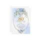 Celebrate a remarkable milestone with this 80th birthday invitation featuring one of today’s most trendy and elegant color combinations: blue and gold. Designed with soft watercolor blue hydrangeas, fresh eucalyptus greenery, and refined gold floral accents, this invitation brings a sense of calm sophistication and joyful celebration to an unforgettable occasion.