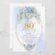 Stylish Blue Hydrangea Gold Accent 80th Birthday Einladung