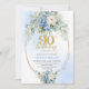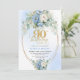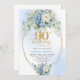 Stylish Blue Peony Gold Frame 90th Birthday Invite Einladung