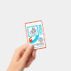 Ein helles, farbiges Anführungszeichen-Motiv, das durch einen roten Rand an den äußeren Felgen der Karte eingekapselt ist.
