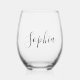 Elegant personalized stemless wine glass featuring your name in a clean, modern script. A chic everyday essential and a thoughtful gift idea. You can customize the name and font to match your style — perfect for moms, sisters, best friends, aunts, grandmothers, bridesmaids, and maids of honor.