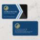 Card details are over on the left with a gold global logo you can use placed at the top. Just below this is your prestigious name and job title with the business name near the base.