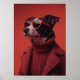 This striking modern artwork features a stylish dog dressed in a bold red outfit and sunglasses, blending fashion photography aesthetics with playful character design. The monochromatic color palette creates a strong visual impact, making the piece feel contemporary, confident, and gallery-worthy. With its clean background and editorial-style lighting, this artwork fits seamlessly into modern interiors, creative studios, and design-forward homes.