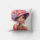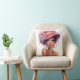 Stylish Floral Hat Woman Vibrant Portrait Art Kissen