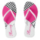 Designer Racing Flip Flops nur für sie, personalisieren Sie den Text oder Text ist abnehmbar. Das Weiß im karierten Muster kann in jede gewünschte Farbe geändert werden. Die fett rosa Farbakzente können auch in jede Farbe geändert werden. Gutes Geschenk für jeden weiblichen Rennfan.