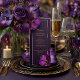Elevate your reception tablescape with the Luminous Violets Wedding Menu, a refined statement piece designed for modern luxury celebrations. Featuring radiant violet florals, a rich twilight backdrop, and delicate gold framing, this elegant menu card brings sophistication and cohesion to your wedding décor.