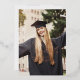 Stylish 2 in 1 graduation party invitation and graduation announcement featuring a large photo of the graduate with decorative overlays in the corners in a minimalist style to frame the graduate, printed with real rose foil. Graduate is written across the photo in a modern signature script with the graduate's name and school and the year beneath, also in rose gold foil. Add the invitation wording to the back inside the same minimalist corner frames with a stylish and minimalist typography design. Change to silver foil or gold foil if desired!