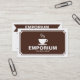 Eine stilvolle Visitenkartenvorlage für ein Café. Auf der Vorderseite der Karte befindet sich eine große gerahmte Tafel mit einem generischen Kaffeetassen-Logo/Symbol mit dem Firmennamen und der Art des Geschäfts darunter. Auf der Rückseite der Karte befindet sich ein Strichband-Stil-Header, der den Firmennamen und den Geschäftstyp im Kopf wiederholt. Im unteren Bereich befindet sich die Adresse oben mit den Öffnungszeiten in der Mitte, darunter die Telefonnummer und unten die E-Mail- und Webadressen. Diese Vorlage erlaubt viel Platz für längere Namen, sodass es einfach ist, sich mit Ihren Details, sondern kann zusätzlich angepasst werden.