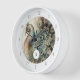 Erschaffen Sie eine personalisierte Wanduhr mit einem modernen, stilvollen Pfau. Fügen Sie einfach Ihr Monogramm oder Initial hinzu.