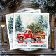 Stylish red truck winter scene rustic napkins set serviette
