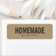 Stylish rustic sticker with the words "Homemade" in bold font and a stylish script for your name or store name in dark grey against a faux kraft background. It is an ideal product label for crafters and makers of handmade goods.
