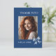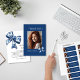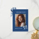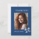 Stylish Trendy Blue Bows Graduation Photo Thank You Card. Featuring gorgeous blue floral ribbon bows trimming the front and back of this high school graduation party invitation. Also perfect for your class of 2026 college graduate! Add your own photo and other party details by following the "Personalize" link. If you would like assistance, please feel free to reach out to me via message here on this site or email at susanmingaydesigns@gmail.com