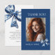 Stylish Trendy Blue Bows Graduation Photo Dankeskarte