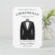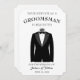 Werden Sie meine Trauzeuge-Karte mit einem klassischen Tuxedo. Fügen Sie diesem Design Ihre benutzerdefinierte Formulierung hinzu, indem Sie die Felder "Diese Vorlage bearbeiten" auf der rechten Seite des Elements verwenden, oder klicken Sie auf die blaue Schaltfläche "Anpassen", um den Text zu ordnen