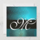 STYLISH WAVES MONOGRAM, aqua blue turquase, saphir Einladung