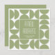 Mit dieser stilvollen, modernen personalisierten Karte aus der Mitte des Jahrhunderts können Sie Ihre neue Adresse bekannt geben. Ein schlichtes und elegantes Design in einer zeitgenössischen Farbpalette. Diese vielseitige Vorlage verfügt über vollständig anpassbaren Text, sodass Sie ihn mit Ihrem Namen, Ihrer Adresse und weiteren Informationen personalisieren können. Announcement-Karten sind ideal, um Ihre Adressänderung zu teilen und eine Einladung für ein Party zur Haushaltserwärmung hinzuzufügen. Druckfarben: Moos grün und weiß.