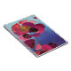 Dieses lebendige Kunstwerk besticht durch abstrakte, stilisierte Blume in Rosa-, Bordeaux- und Goldtönen vor einem zarten blauen Hintergrund, die Eleganz und Kreativität in einer faszinierenden Komposition verbinden.