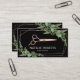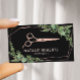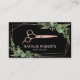 Haare Stylist Rose Gold Scissor Geometric Greenery Hair Salon Black Business Cards.