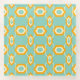 Stylized geometric pattern with bold orange hexagons and white details against a teal background, forming a repeating, symmetrical design.