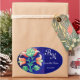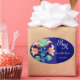 STYLIZIERTE BLUME, GRÜNES BLUE FLORAL MONOGRAM OVALER AUFKLEBER