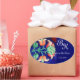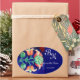 STYLIZIERTE BLUME, GRÜNES BLUE FLORAL MONOGRAM OVALER AUFKLEBER
