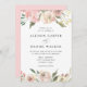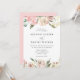 Elegante blumengeschmückte Hochzeitsfeiern, die Ihre Hochzeitsdetails mit den obersten und unteren Rändern der Aquarellfarben und Blätter in gedämpften Farbtönen wie Rosa, Elfenbein, Lila und Grün verbinden. Auf der Rückseite ist ein solider, hellrosa Hintergrund zu sehen. Entworfen, um mit unserer subtile Blooms Hochzeitskollektion zu koordinieren.