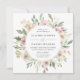 Elegante blumengeschmückte Einladungen mit Ihren Hochzeitsdetails, umrahmt von Aquarellfarben-Rose und Blätter in gedämpften Farbtönen wie Rosa, Elfenbein, Lila und Grün. Auf der Rückseite ist ein solider, hellrosa Hintergrund zu sehen. Entworfen, um mit unserer subtile Blooms Hochzeitskollektion zu koordinieren.