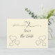 Einfache, süße Kalligrafieherzen und ein eleganter Schriftart auf einem subtilen, cremefarbenen Hintergrund und die fröhlichen Paarnamen, die auf der Rückseite eines romantischen Herzens mit Kuppelpfeilchen vergangener Zeiten verweilen. Einfach anpassen, einfach eigene Details hinzufügen.
