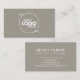 Elegante und klassische weiße Script Schriftart Visitenkarte mit individualisierbarem Logo auf der Vorderseite. Subtile und minimalistische Imitate Stoff Textur graue Leinen Textur.