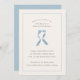 Handgemalte Schleife mit feinen Streifen in Baby Blue und Elfenbein; bearbeitbare Rahmen und Hintergrundfarbe vorne und hinten. Hinzufügen eines QR-Codes, falls gewünscht, zur Rückseite für Registrierung, Website usw.
