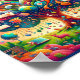 Dieses Poster präsentiert eine lebendige und fantasievolle Landschaft, die sich perfekt für Neugier und Kreativität im Kinderzimmer eignet. In der Mitte befindet sich ein großer, majestätischer Baum, dessen Blätter aus farbenprächtigen Büchern genial gefertigt wurden, was den Wissensbaum und die Bedeutung des Lesens symbolisiert. Verschiedene Musikinstrumente, darunter eine Geige, eine Flöte und ein Tambourin, hängen kläglich von den Ästen des Baumes ab, was zu einer Wertschätzung für Musik und Kunst führt. Unter dem Baum ist ein detaillierter Globus eingebettet zwischen den Wurzeln, der die Erforschung der Welt und das Streben nach geographischem Wissen repräsentiert. Um diese zentrale Bildsprache herum befinden sich spielerische Tiere - eine weise Eule, die ein Buch liest, ein neugieriges Kaninchen, das durch eine Lupe schaut, und eine Gruppe von Vögeln, die mit musikalischen Noten spielen und sich allesamt für das Lernen interessieren. Die Landschaft ist farbenreich, von warmen Gelbtönen und Orangen bis hin zu cooler Blues und Grüntönen, die ein anregendes visuelles Erlebnis schaffen. Am Himmel bilden Wolken sanft die Form einer Traumblase, und der Fluss darunter fließt in einem Muster musikalischer Noten. Am Nachthimmel richten sich Sterne subtil auf Konstellationen von Bildungs-Ikonen aus. Im gesamten Poster sind kleine, motivierend Zitate wie "Dream Big", "Learn and Grow" und "Imagine" in spielerischen Schriftart verstreut und fügen der Szene eine inspirierend Touch hinzu. Diese Elemente schaffen gemeinsam ein magisches Umfeld, das Fantasie, Lernen und eine Liebe für Wissen auf subtile und einnehmende Weise fördert.