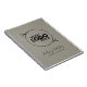 Elegantes und klassisch personalisierbares Black Script Schriftart Notebook mit anpassbarem Logo. Subtile Imitate Stoff Textur graue Leinenstruktur. Einfaches Minimaldesign