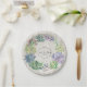 Einzigartige Schriftart, farbenfrohe Aquarellbilder und rustikale Holzklötze-Hintergründe sind die Highlights dieser Mix-and-Match-Hochzeitsprodukte. Diese markante Papierplatte hat einen großen Blattkranz auf einem hellen, verwitterten Holzboden mit einer Vorlage zum Bearbeiten der Initialen von Braut und Bräutigam und des Hochzeitdatums auf dem mittleren Etikett. Suchen Sie ID515, um alle passenden Produkte in diesem Set zu sehen.