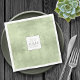 Einzigartige Schriftart, farbenfrohe Aquarellbilder und glitzernde Hintergründe in einem weichen Frühlinggrün sind die Highlights dieser Mix-and-Match-Hochzeitsprodukte. Diese schöne Papierserviette hat einen glänzenden, texturierten Hintergrund in hellen und dunklen Tönen von Frühlinggrün mit einer Vorlage, um eine persönliche Nachricht zu bearbeiten, Braut und Bräutigam Initialen und Hochzeitstermin auf einem zentrierten weißen Etikett. Suchen Sie ID515, um alle passenden Produkte in diesem Set zu sehen.