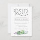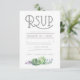 Einzigartige Schriftart, farbenfrohe Aquarellbilder und glänzende Hintergründe in einem weichen Federgrün sind die Highlights dieser Mix-and-Match-Hochzeitsprodukte.Diese wunderschöne RSVP-Hochzeitskarte hat einen Blattschleifer auf weißem Hintergrund mit einer Vorlage, mit der Sie Ihre bevorzugte Formulierung bearbeiten und das Rückgabedatum festlegen können. Ein glänzendes, texturiertes Muster in hellen und dunklen Farbtönen von Frühlingshönen fügt einen kontrastreichen Hintergrund auf der Rückseite hinzu. Suchen Sie ID515, um alle passenden Produkte in diesem Set zu sehen.