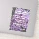 Dieser große Aufkleber der Blumenbibel Verse zeigt die weißen Wörter des Schriftstellerverses von Matthew 6:33-34 über einen lila Blume-Haufen. "Aber zuerst das Reich Gottes und seine Rechtschaffenheit suchen, und all diese Dinge werden dir auch gegeben werden, also kümmere dich nicht um morgen, denn morgen wird sich um sich selbst kümmern." Matthew 6:33-34
