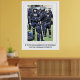 Mehrere Polizisten in voller Aufruhr und die Worte unten: "Wenn du Ärger suchst, wirst du es wahrscheinlich finden".