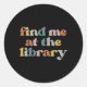 Suchen Sie mich im Bibliotheksbibliotheken-Nerd Runder Aufkleber
