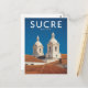 Celebrate the beauty of the White City, Sucre, Bolivia, with this elegant travel postcard. The design showcases the city's iconic colonial architecture, featuring the brilliant white bell towers and domes rising above the warm, terracotta tile roofs. Set against a deep blue sky, this image perfectly captures the timeless charm of this UNESCO World Heritage site. This card is ideal for South American travel lovers, architecture enthusiasts, or anyone sending greetings from the historic heart of Bolivia.