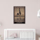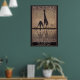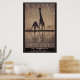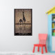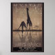 Zwei Giraffen trinken an einem Wasserloch. Dieses klassische Kunstplakat wirbt für Südafrika.