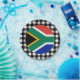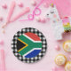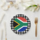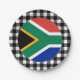 Paper Tellers: Rustikale Südafrika Party Teller mit südafrikanischer Flagge umgeben von schwarz-weiß Büffel karierte Muster - Liebe mein Land, festliche Dekoration, nationale Patrioten / Sportfans