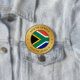 Die südafrikanische Fahne ist in einen gerundeten Goldring der Imitate eingetaucht. Die Wörter "Südafrika" stehen oben und unten im Design und sind gepresst. Das Paar von drei dekorativen Sternen zueinander, sind auch mit einem gepressten Effekt gestaltet.