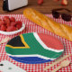 Patriotische Flagge Südafrikas. Große südafrikanische Souvenirs und südafrikanische Geschenke.