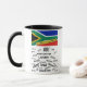 Eine Spaßkaffee-Tasse, welche die südafrikanische Flagge, zusammen mit SA-Jargonwörtern kennzeichnet. Suchen Sie heraus nach den zusammenpassenden Untersetzer!