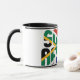 Südafrikanische Nationalflagge Patriotische Kaffee-Tasse mit der reizvollen Aufschrift "Südafrika", die mit dem Muster und den Farben der Nationalflagge verziert ist. Das Design wird mit den beiden doppelten dünnen Linien in den Farben oben und unten auf der Tasse beendet. Die Farben innerhalb des Bechers und auf dem Bechergriff werden mit der Erholung der Becherfarben ausgeglichen. Die Linienfarben können durch das Drücken der Schaltfläche "Design bearbeiten" auf eine beliebige Farbe geändert werden. Hier ist der fantastische Begleiter für die tägliche Tasse Kaffee. Charmantes Design, schöne Farben und das einzigartige Aussehen machen es zu einem perfekten Geschenk für jeden Anlass. © 2023 Länderder Welt