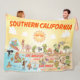 Die helle und charmante Decke aus dem Cartoon bietet einen herrlichen Blick auf Südkalifornien - süße Figuren genießen die warme kalifornische Sonne mit Los Angeles, San Diego, Riverside, Palm Springs, Anaheim und Long Beach, Anza Borrego und Joshua Tree Parks sowie die Grenzstädte Tijuana, Tecate und Mexicali.